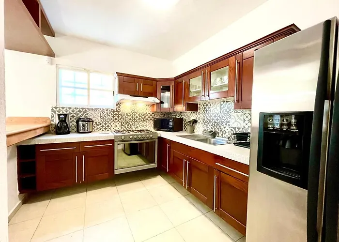 La villa Casa Mar Y Amor, de 250 m², ofrece alojamiento en Cancún, a 2 km de la Avenida Tulum y a 1 km del Estadio Beto Ävila. Esta villa también viene con un patio, una caja fuerte personal y una zona de estar dentro de las habitaciones, así como cuenta con una cocinilla equipada.